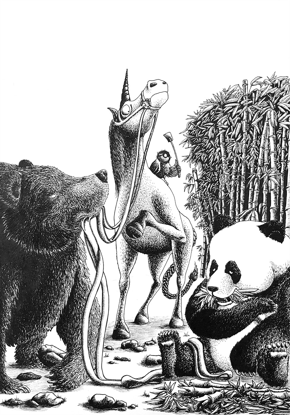 Baignant dans le dessin depuis l'enfance, je me suis laissé tenter par l'encrage. En découvrant les feutres Pigma Micron j'ai découvert une autre façon de réaliser mes dessins, en jouant sur les détails et beaucoup de minutie accompagnées de grosses crampes aux doigts pour aboutir à des contrastes très marqués.