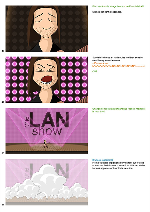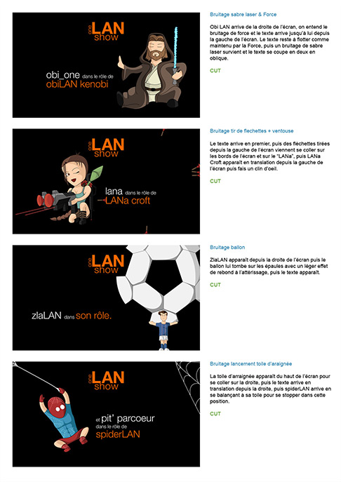 Le One LAN Show, c'est une campagne de communication pour promouvoir les solutions LAN auprès des commerciaux d'OBS. Au cœur de la campagne, une courte vidéo de 3 minutes diffusée sur le réseau interne d'OBS, où plusieurs personnages se succèdent pour prendre la parole et véhiculer un des bénéfices de l'offre LAN.