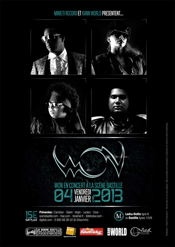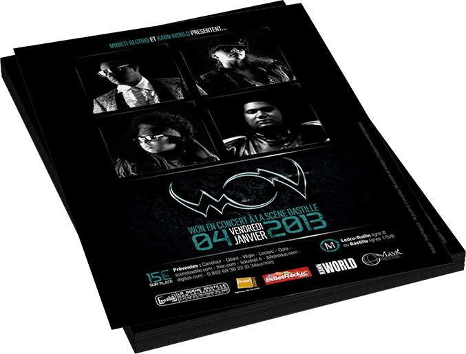 En partenariat avec Oniryk Production, Won, groupe de musique naissant, cherchait à créer son identité pour se lancer. Mon rôle a été notamment de concevoir leur logo et préparer la communication pour leur concert à venir.